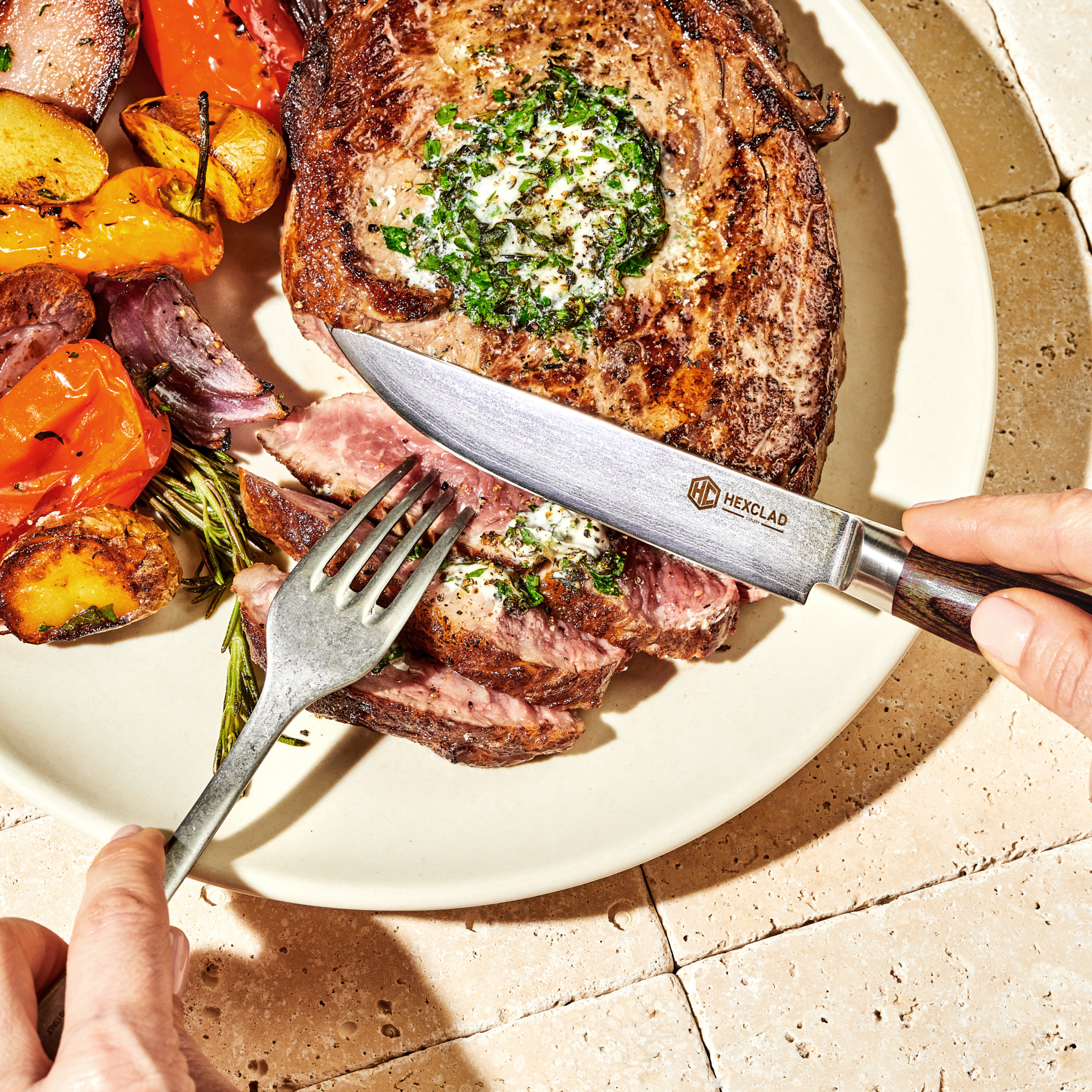 Our 4-piece steak knife set is for those who want to savor–not saw–their favorite cuts. Made to the same exacting standards as our chef’s knife, each blade is forged from 67 layers of Japanese Damascus steel for unbeatable sharpness, gliding through any protein. Unique espresso pakkawood handles elevate table settings.