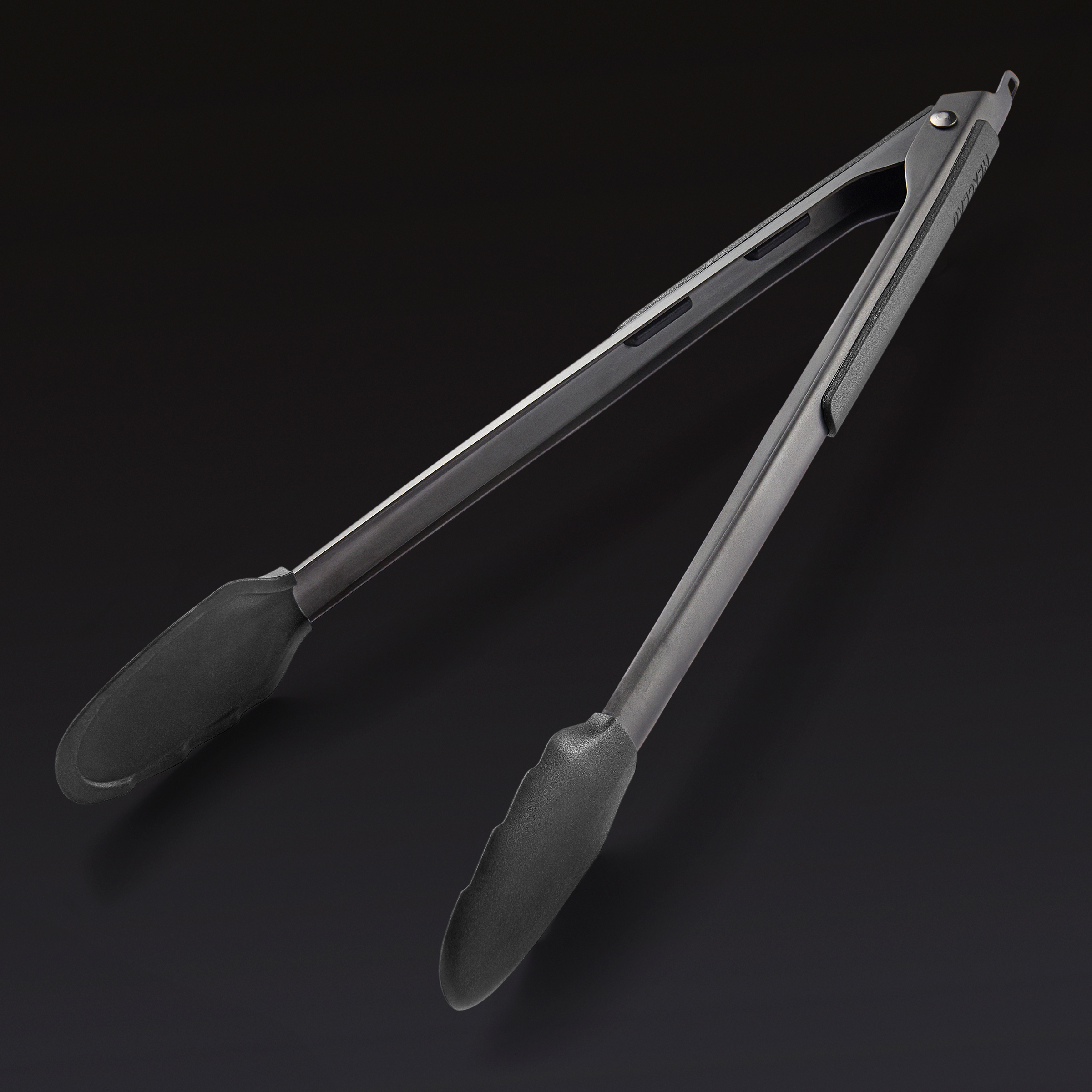 Tongs: Silicone-tipped tongs have a gravity locking mechanism for easy one-handed locking and unlocking.