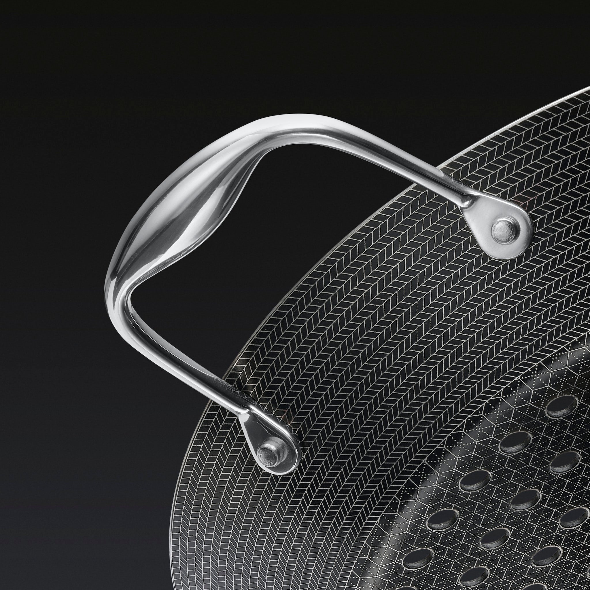 Up your open-flame game: The perfectly-sized perforations on our Hybrid Grill Pan ensure that delicate, smaller ingredients like vegetables and seafood take on mouthwatering, smoky flavor without risking anything falling through the grates. High, angled sides let you stir, flip and arrange with ease. With its 12-inch diameter, it’s large enough to serve the whole family, but small enough to leave room on the grill for the rest of your meal. Plus, our TerraBond ceramic nonstick surface–made to handle heat up to 900°F–makes cleanup as easy as a sunny afternoon by the grill.